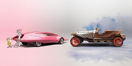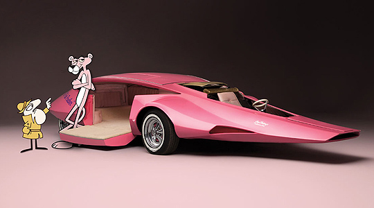 Jay Ohrberg ist wohl nur Insidern ein Begriff, doch seine automobilen Kreationen begeisterten ein Millionenpublikum und großenteils Kultstatus. So gehen unter anderem der Ford Gran Torino aus Starsky and Hutch, KITT aus Knight Rider, verschiedene Batmobile, der zeitreisende DeLorean aus Zurück in die Zukunft, das Gefährt der Flintstones sowie das Panthermobile des rosaroten Panthers auf Ohrbergs Konto. Letzteres war 1969 für die legendäre „Pink Panther Show“, die in den USA zwischen 1969 und 1976 ausgestrahlt wurde, entworfen worden. Das rosarote, mit seiner langgezogenen Rüsselschnauze einem nackten Ameisenbären ähnelnde Panthermobile spielte in der TV-Serie eine zentrale Rolle. Der Fahrer saß weit vor der Vorderachse, während man sich – ganz im Sinne der Zeit – auf einer Spielwiese im Innenraum verlustieren konnte.